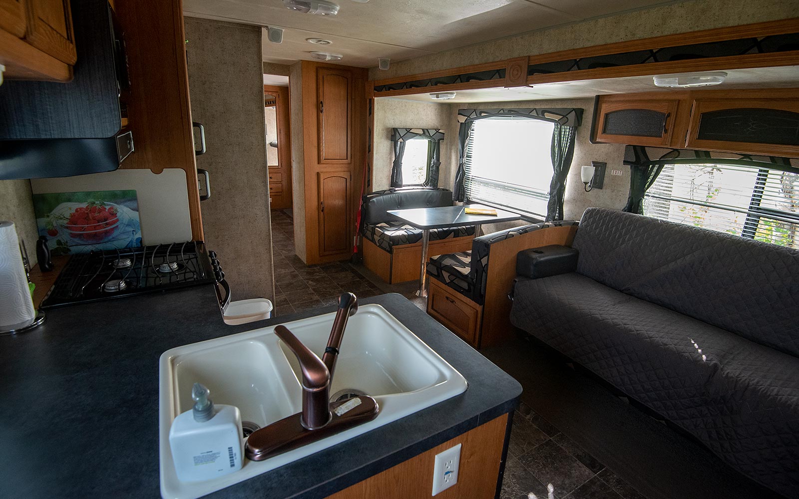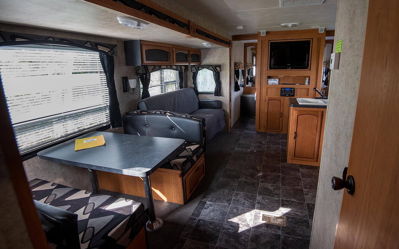 Simpson’s Cavendish Trailer Rentals do not allow the use of trailer awnings. Instead, each trailer is provided with a pop-up tent shelter. If a pop-up shelter is damaged or broken, a fee of $150 CAD will be charged for replacement.